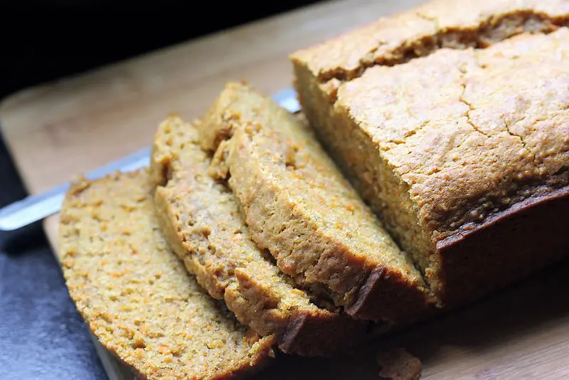 - Pour batter into a 9 x 5 loaf pan lightly sprayed with cooking spray. Bake for 1 hour or until a toothpick inserted comes out clean. Let cool for about 10 minutes, remove from pan, and cool on a wire rack before serving.