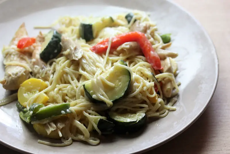 - 8 ounces’ angel hair pasta (cooked according to package directions and rinsed)