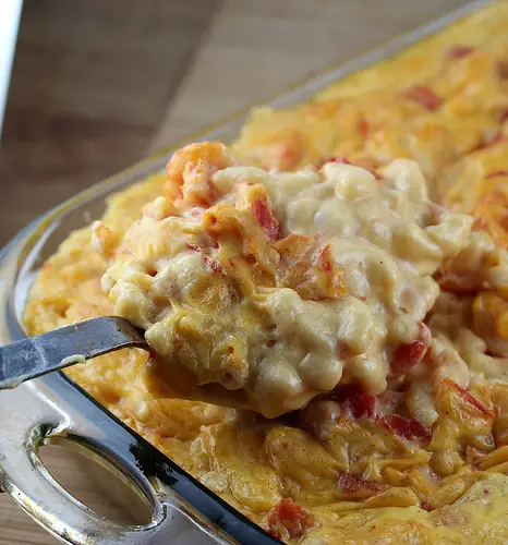 - Serve with the meat sauce over the noodles garnished with the left over onion and shredded cheddar cheese.