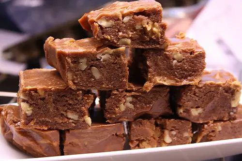 - Stir well. Fold in nuts. Pour into pan. Cool Thoroughly.