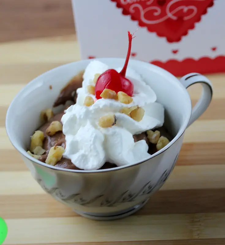 With Valentine’s Day this week-end I thought it would be a great time to post this Chocolate Pudding for Two Recipe. This is a simple recipe to prepare but you have to allow enough time for it to cool. I used whole milk in this recipe, but you can convert it into a low-fat recipe by using 2% milk.