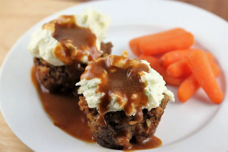 - Serve the potatoes over the meatloaves topped with the gravy.