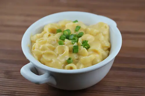 - Drain and rinse the pasta shells, then mix them together with the cheese sauce.