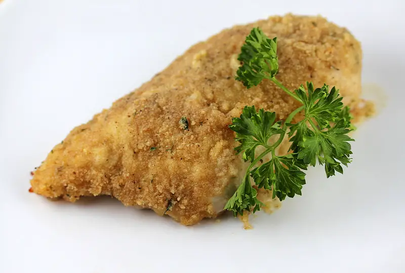 - Place the bread crumbs in a wide shallow dish like a pie plate, roll the chicken in the butter mixture to thoroughly coat, and then in the bread crumbs. Place the chicken in the casserole dish and drizzle with any left-over butter.