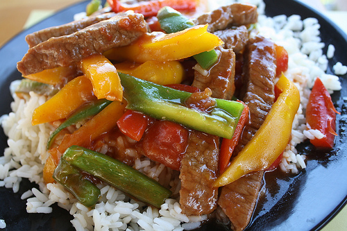 It calls for diced tomatoes which is kind of unusual but gives it a unique flavor. If you like pepper steak give this recipe a try. It is very colorful for the company and it tastes great.