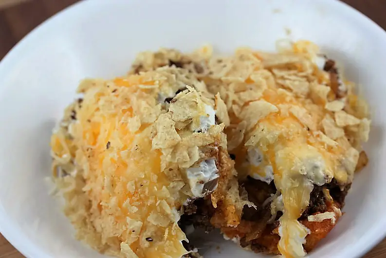 - 1 (12-13 ounce) bag tortilla chips (crushed)