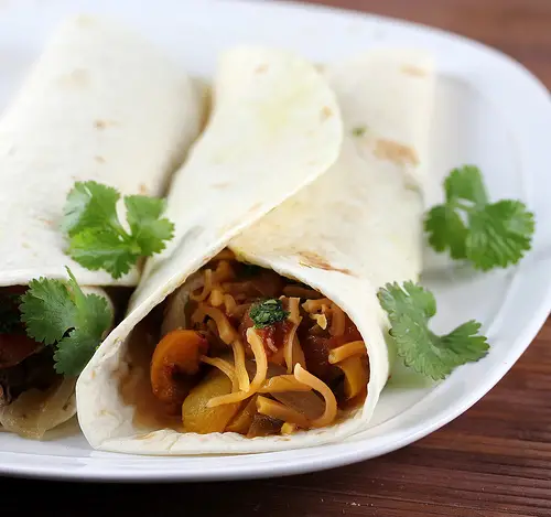 - Serve by spooning 3/4 cup of the meat mixture down the center of each tortilla. Then top with salsa, shredded cheese and 1 teaspoon of Cilantro.