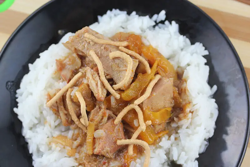 It has been raining so much I haven’t had time to get much outdoor work done. There is a little bit of a break in the rain so I decided on this Slow Cooler Thai Pork with Peppers Recipe so I could get some work done while supper is cooking.