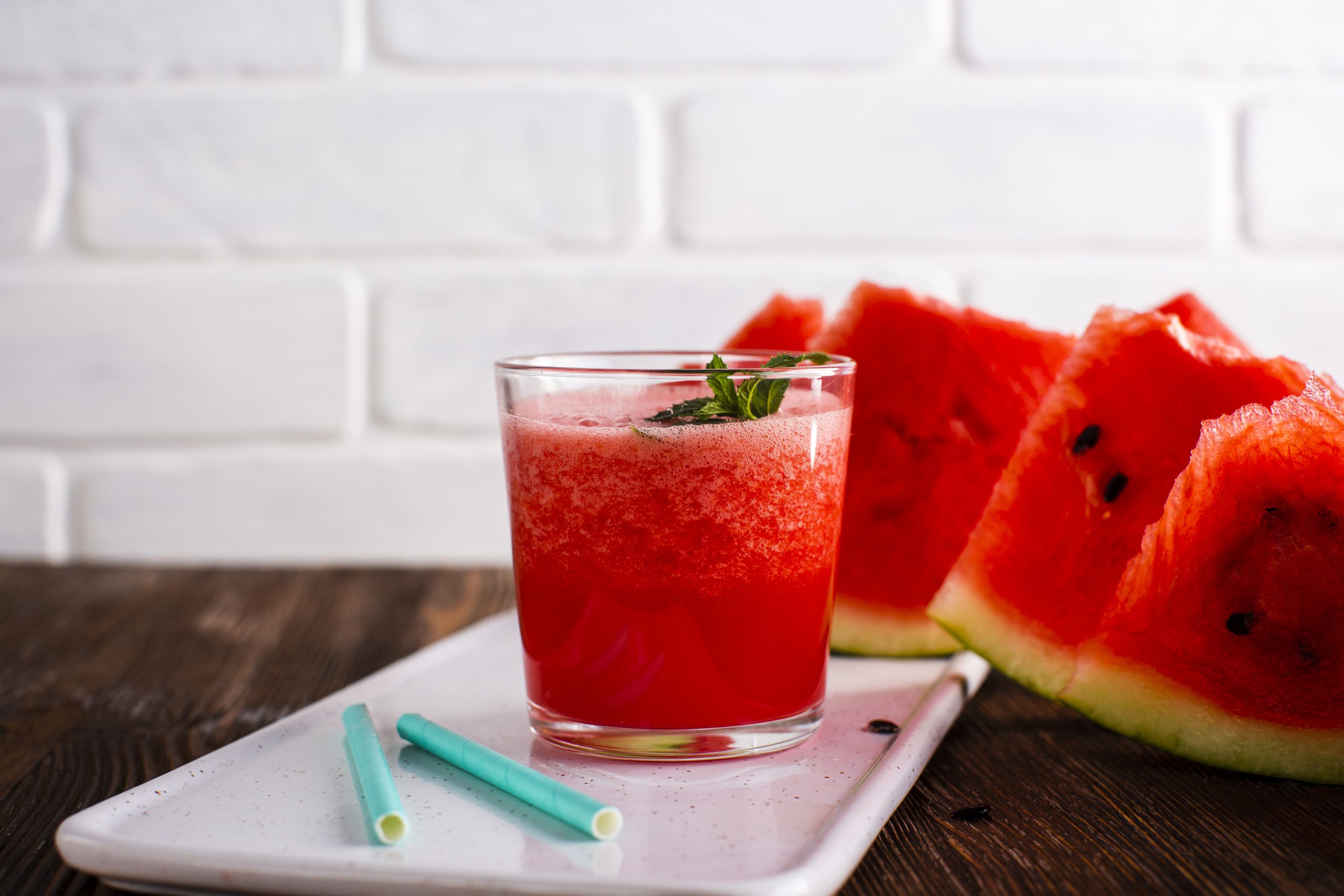 - Garnish the drink with a watermelon wedge and a lime slice.