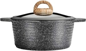 It is dishwasher-safe and contains no PFOAs or PTFAs. It’s also safe for ceramic, electric and gas stoves. The stone cookware set has a non-stick non-riveted handle, making it comfortable to hold. The stone cookware is also oven-safe and free from lead or cadmium. So, it’s safe for your dishwasher, and the non-stick coating won’t chip or flake, even with frequent use.