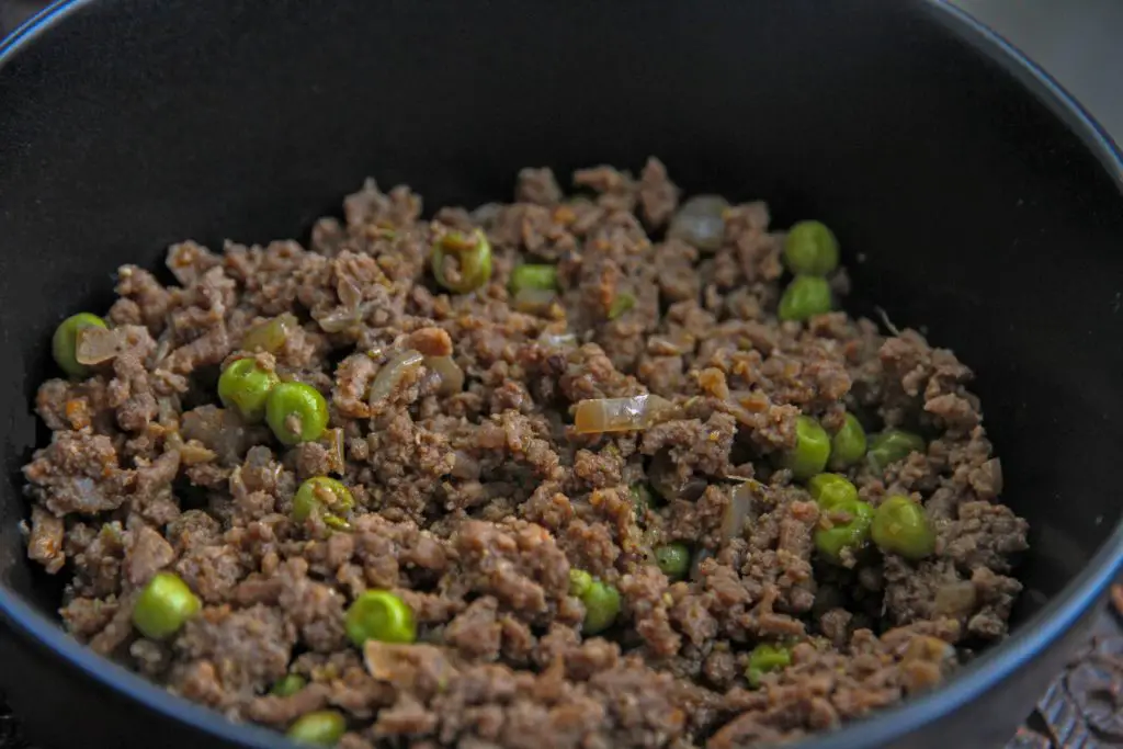 The key to properly cooking ground beef is to avoid moving it around too much until it’s done and attractively browned—this aids in forming a beautiful crust on the meat. Before cooking the beef, allow it to come to room temperature on the counter for 15-20 minutes. I sauté it in cooking oil, generally olive oil because that’s what I have on hand, but any cooking oil would do. Browning is best done with olive oil, in my opinion. It’s critical to use a large pan. Non-stick does not appeal to me for this purpose. I prefer stainless steel or cast iron to nonstick because it gives the meat a better crust. It’s best to use a thick, heavy pan for this because it cooks more evenly. I flatten the beef into a large, thin burger patty after it’s in the pan. I wait for a crust to form before breaking it up and flipping it. Then I let the meat finish cooking before cutting it into even smaller pieces.